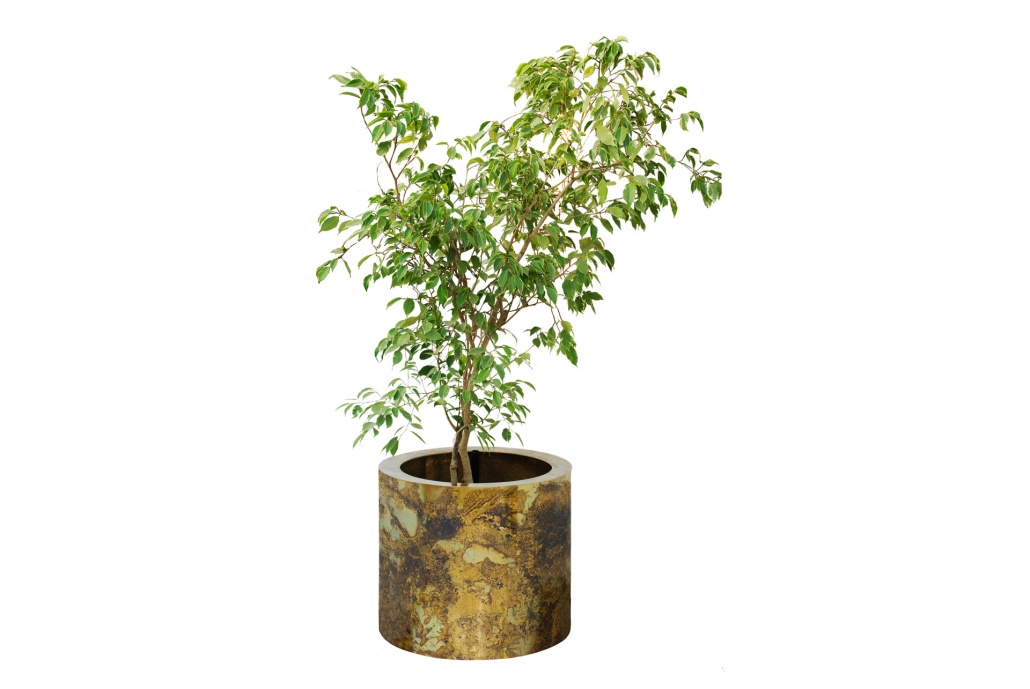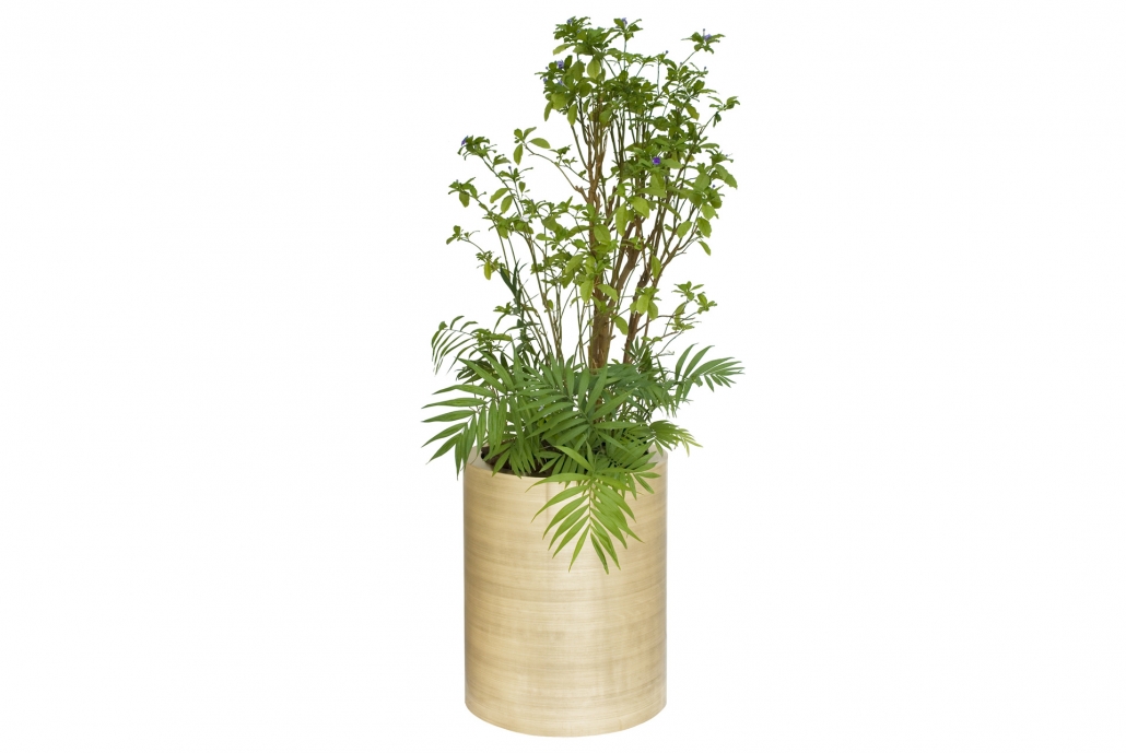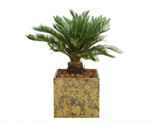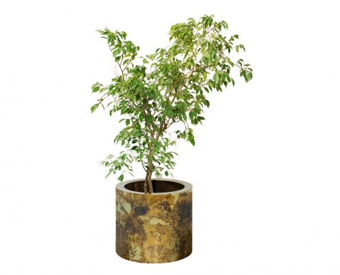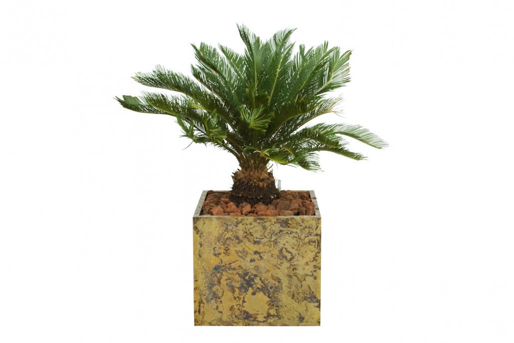 Jardinera de Bronce Cilindrico Recto con Palmera
